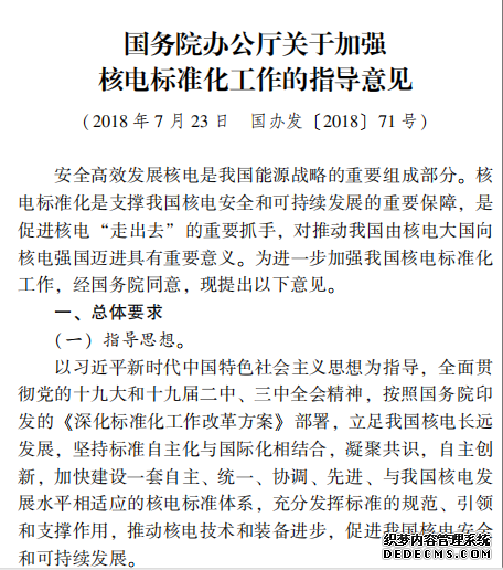 國(guó)務(wù)院辦公廳關(guān)于加強(qiáng) 核電標(biāo)準(zhǔn)化工作的指導(dǎo)意