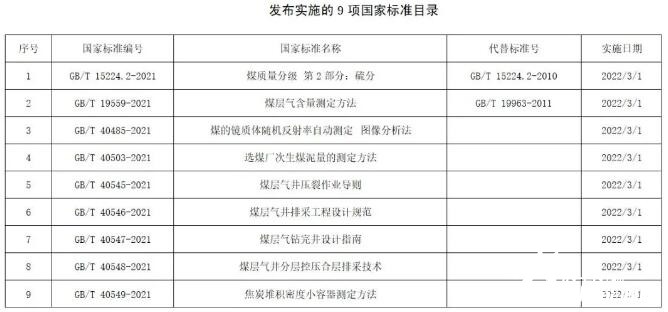 9項煤炭領(lǐng)域國家標準正式發(fā)布