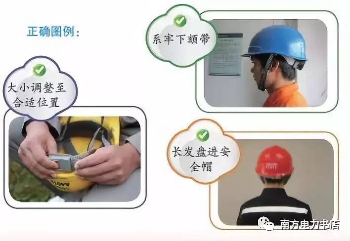 (3)系緊下頦帶,以防止工作過程中或外來物體打擊時脫落;長頭發(fā)應(yīng)盤入帽內(nèi);戴好后應(yīng)將后扣擰到合適位置,下頦帶和后扣松緊合適,以昂頭不松動、低頭不下滑為準(zhǔn)。