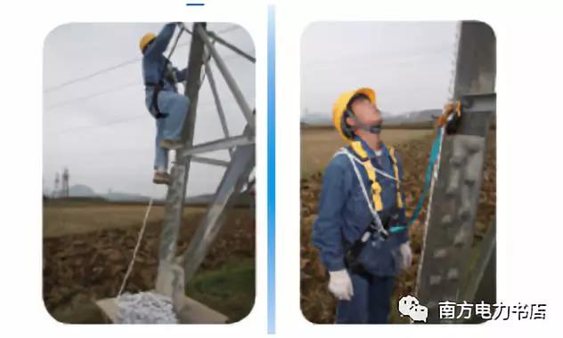 (3)檢修人員利用腳扣或沿著鋼桿爬梯到達(dá)桿上的作業(yè)點。