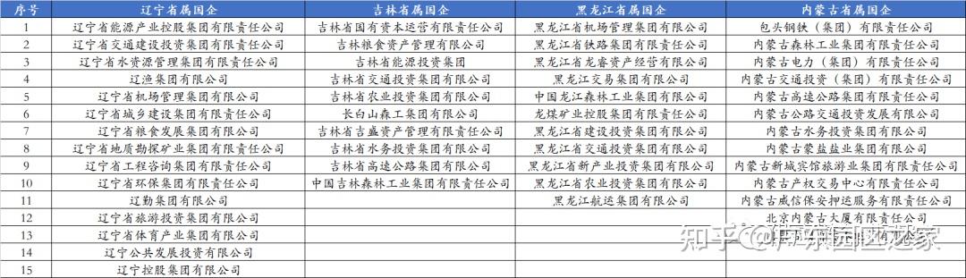 東北三省共有36家省屬國企,其中遼寧省15家、黑龍江11家、吉林省10家。相對其他省份,在行業(yè)分布上東三省因其豐富的林業(yè)資源,森工集團是省屬國企的一大特色。此外,內(nèi)蒙古擁有13家省屬國企。