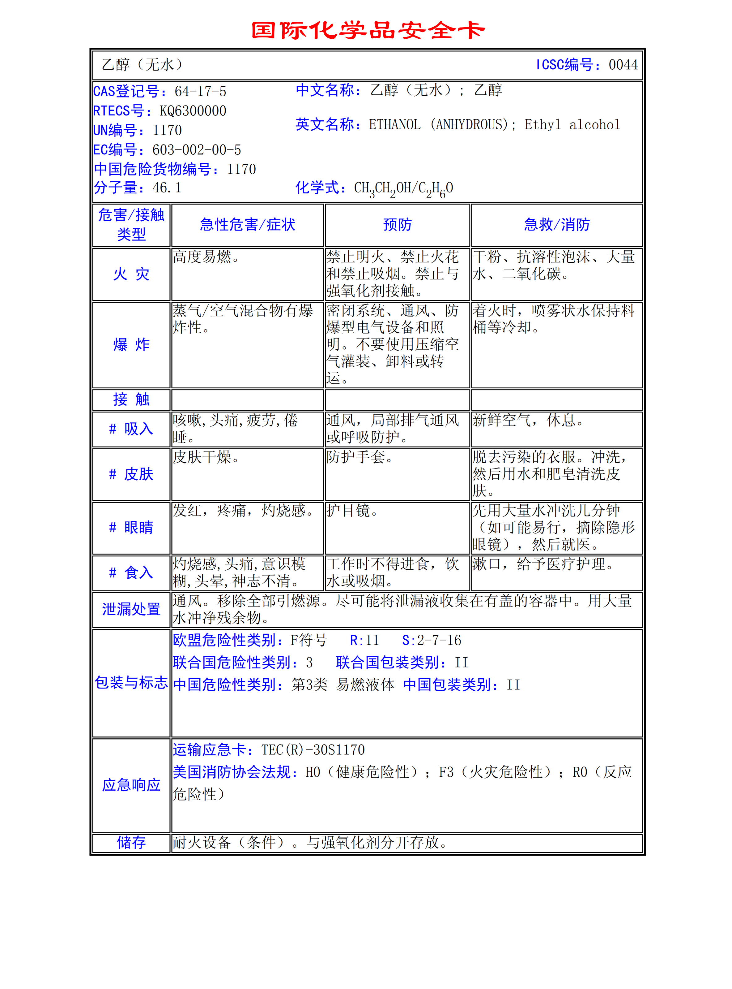 乙醇(無(wú)水)MSDS