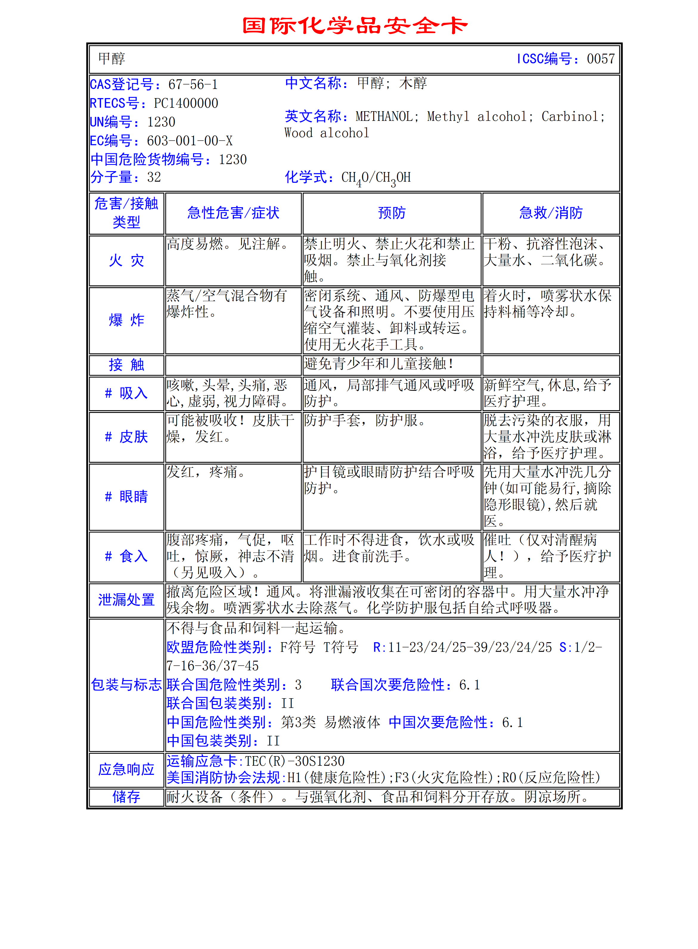 甲醇MSDS