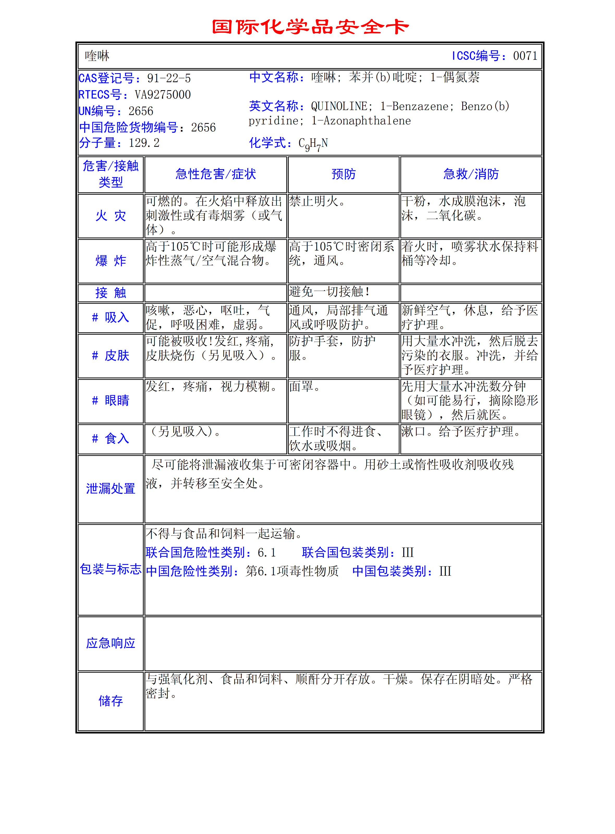 喹啉MSDS