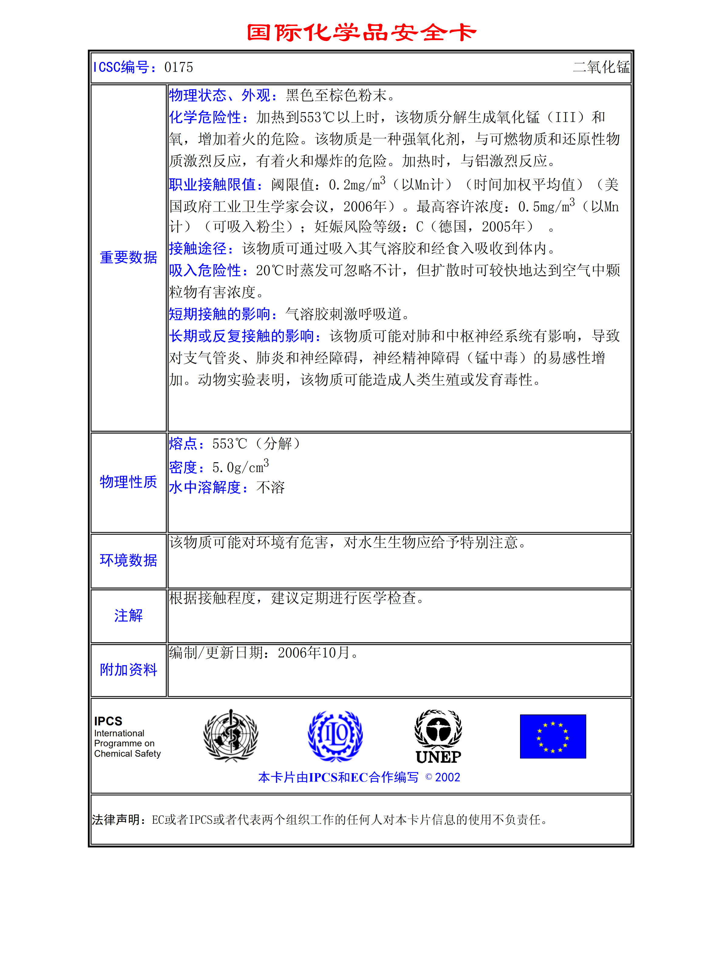 錳(粉末)MSDS