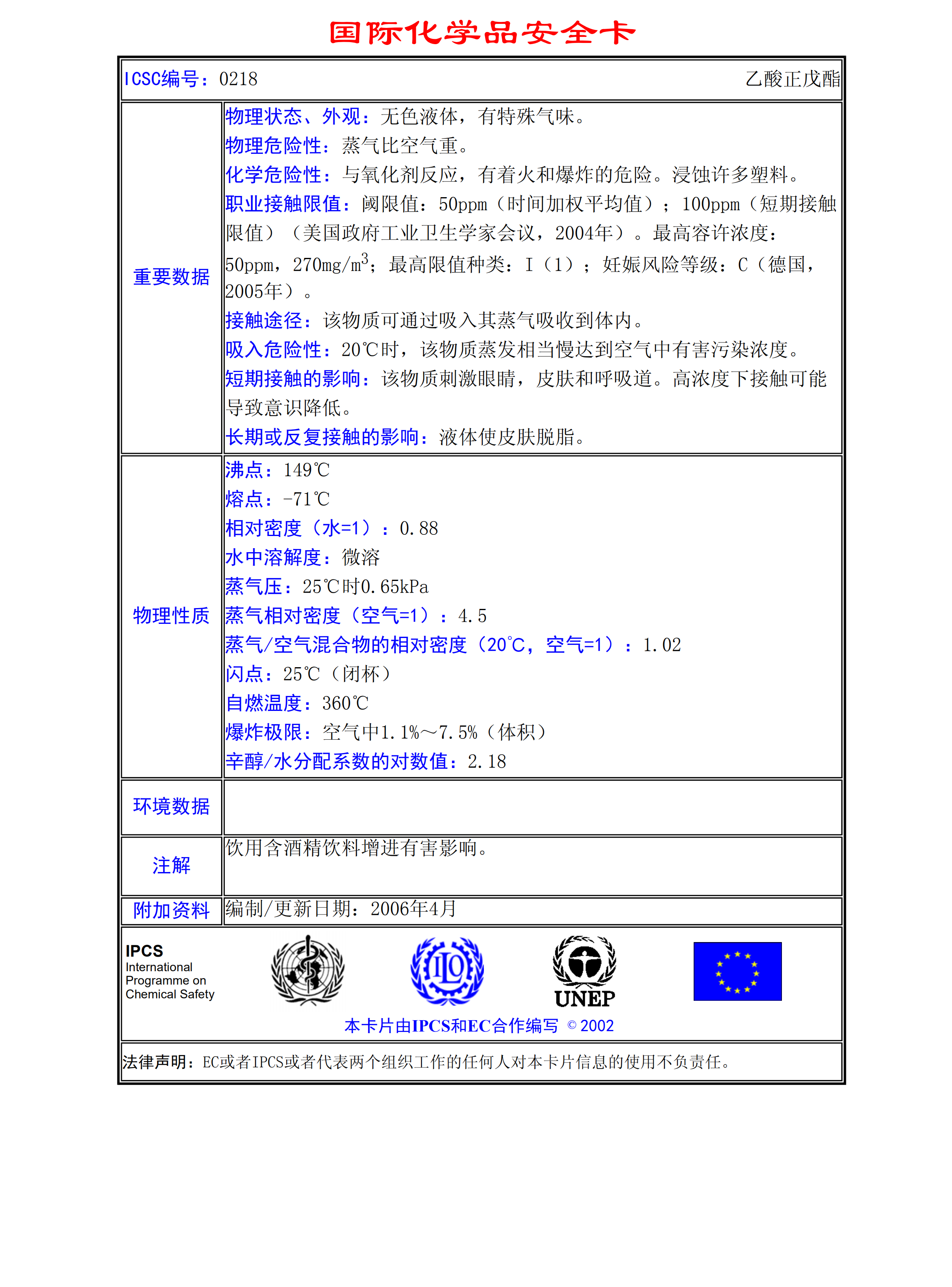 乙酸正戊酯MSDS