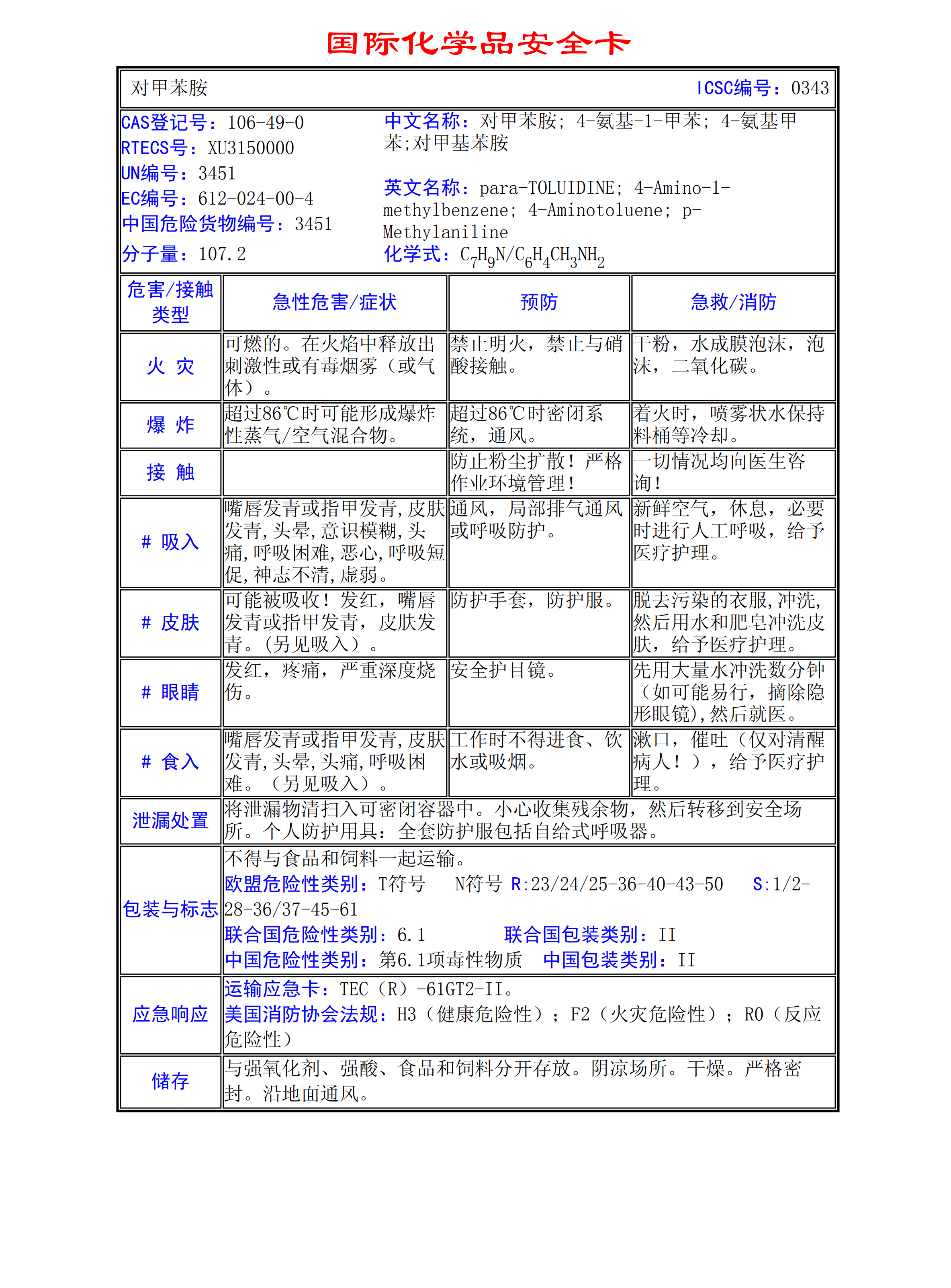 對甲苯胺MSDS