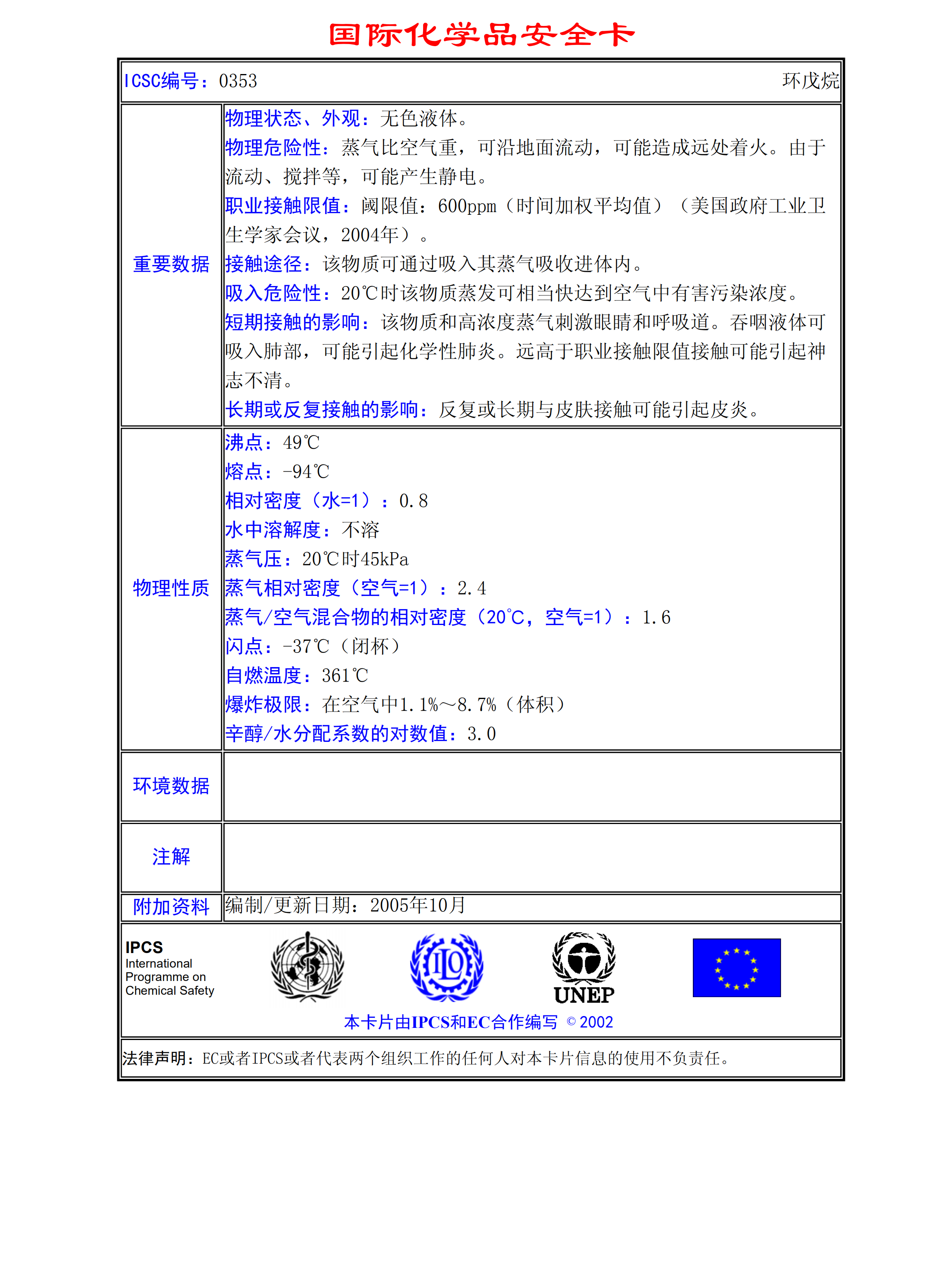 環(huán)戊烷MSDS
