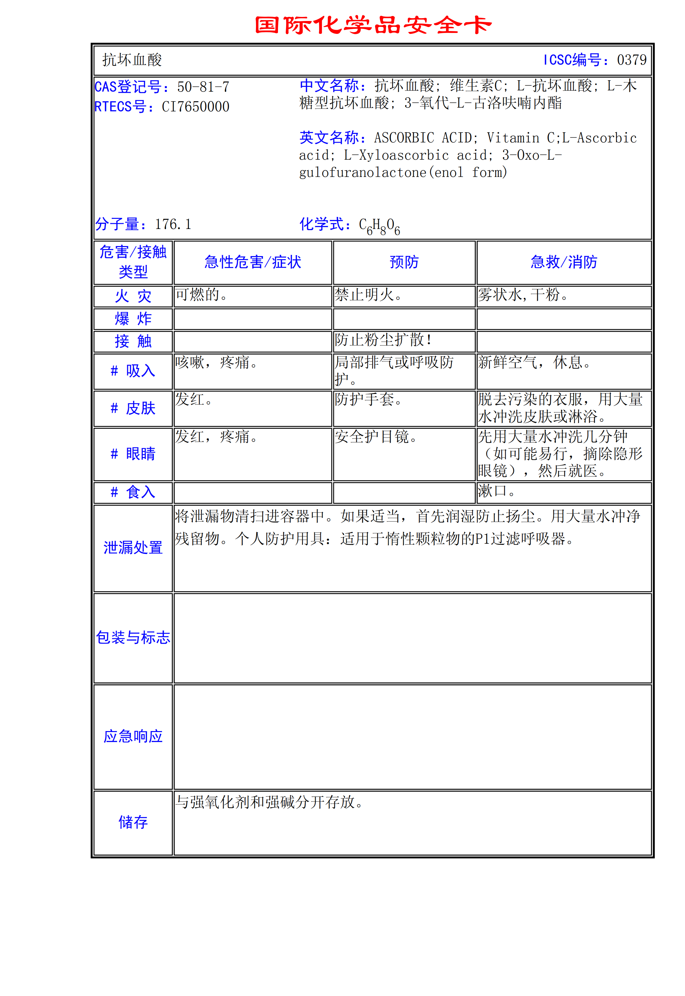 抗壞血酸MSDS