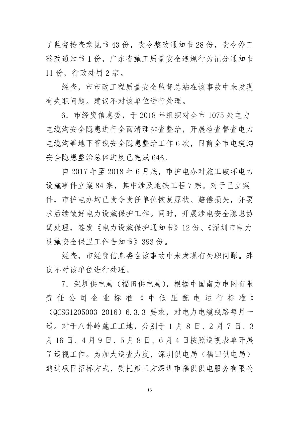 福田區(qū)人民政府關(guān)于深圳市城市軌道交通6號(hào)線二期主體工程6111標(biāo)“7.05”10kv電力電纜受損事故調(diào)查報(bào)告