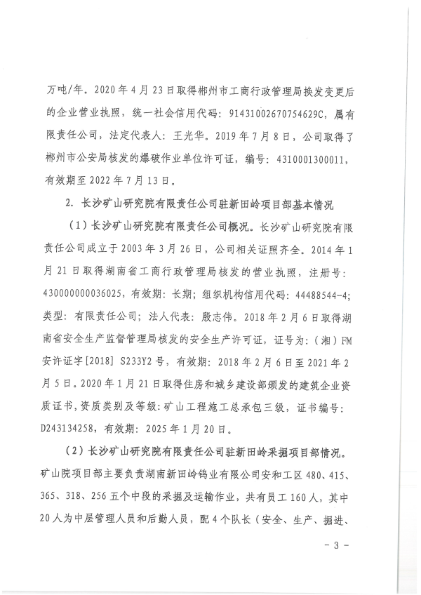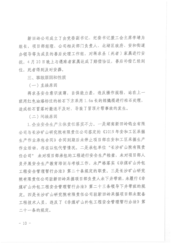 湖南新田嶺鎢業(yè)有限公司“4?19”冒頂片幫事故調(diào)查報告