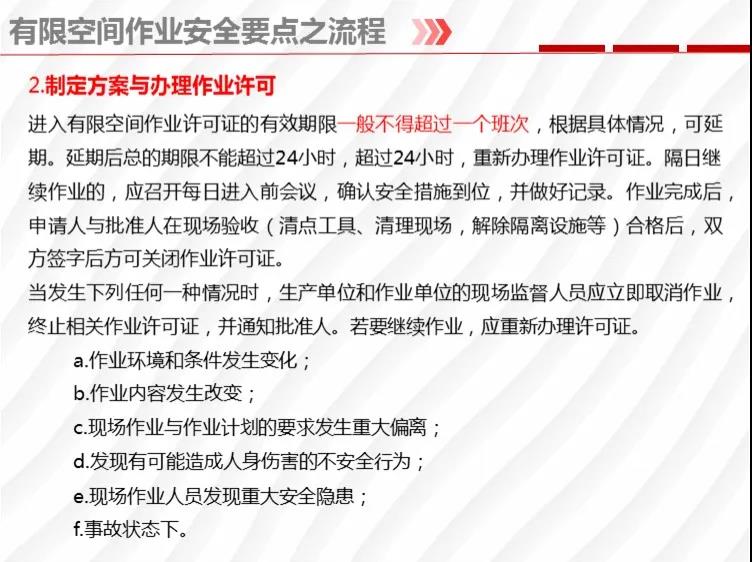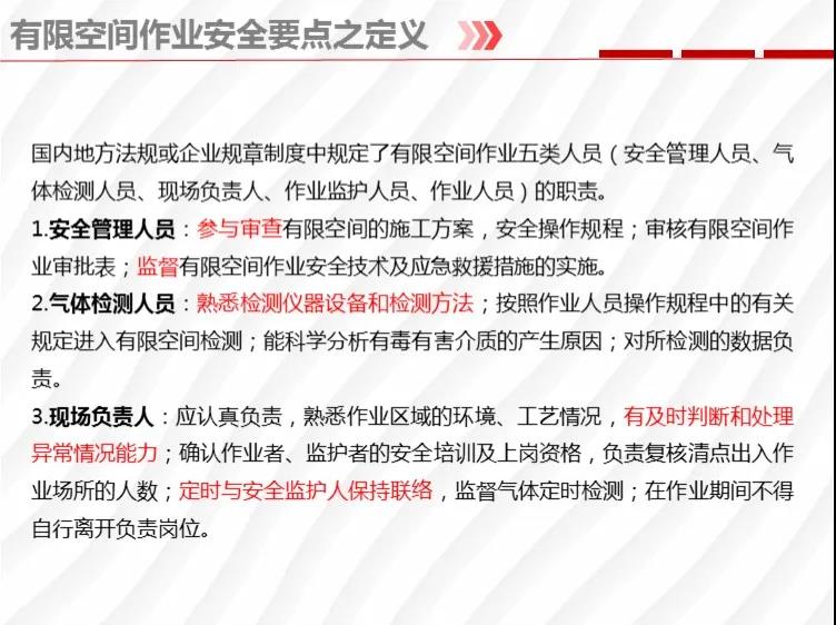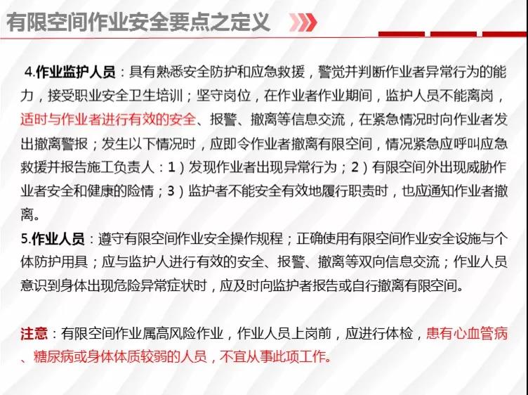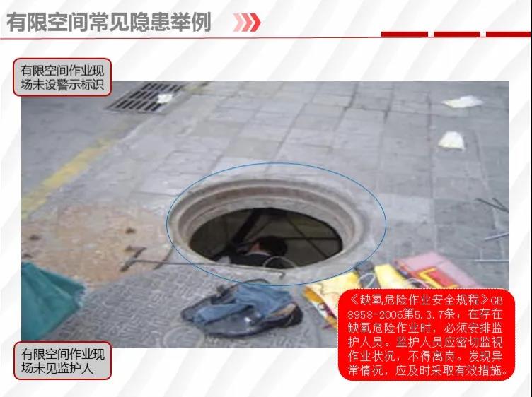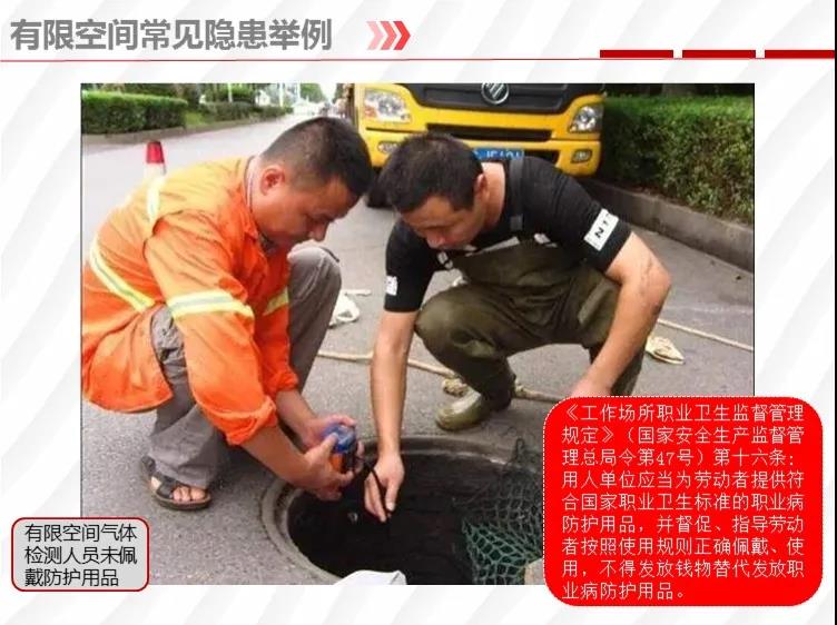 二要嚴格落實有限空間作業(yè)安全管理規(guī)定。各地各有關(guān)部門要督促企業(yè)嚴格執(zhí)行《安徽省有限空間作業(yè)安全管理與監(jiān)督暫行規(guī)定》,凡涉及到有限空間作業(yè),做到“五個必須”,即必須嚴格實行作業(yè)審批制度;必須做到“先通風、再檢測、后作業(yè)”;必須配備個人防中毒窒息等防護裝備,設(shè)置安全警示標識;必須對作業(yè)人員進行安全培訓;必須制定應(yīng)急措施,現(xiàn)場配備應(yīng)急裝備,嚴禁盲目施救。