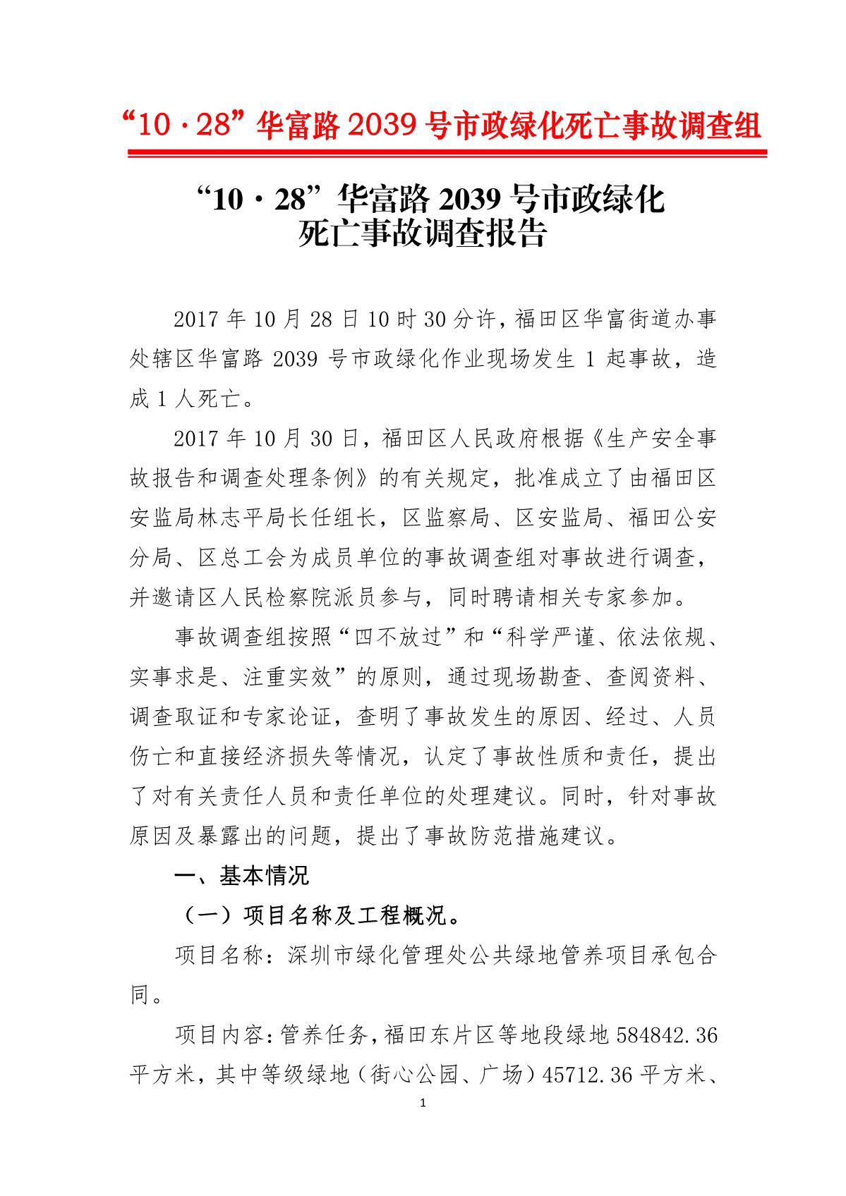 “10.28”華富路2039號市政綠化死亡事故調(diào)查報(bào)告