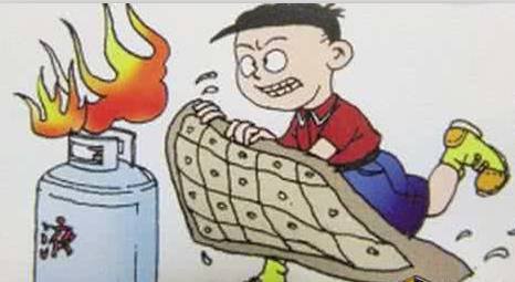 ● 遇到煤氣泄漏或輸出管著火時,應(yīng)采取正確的滅火方法,可以用濕毛巾捂住口鼻進(jìn)入室內(nèi),并用浸濕的棉被蓋住燃燒處后關(guān)閉閥門。